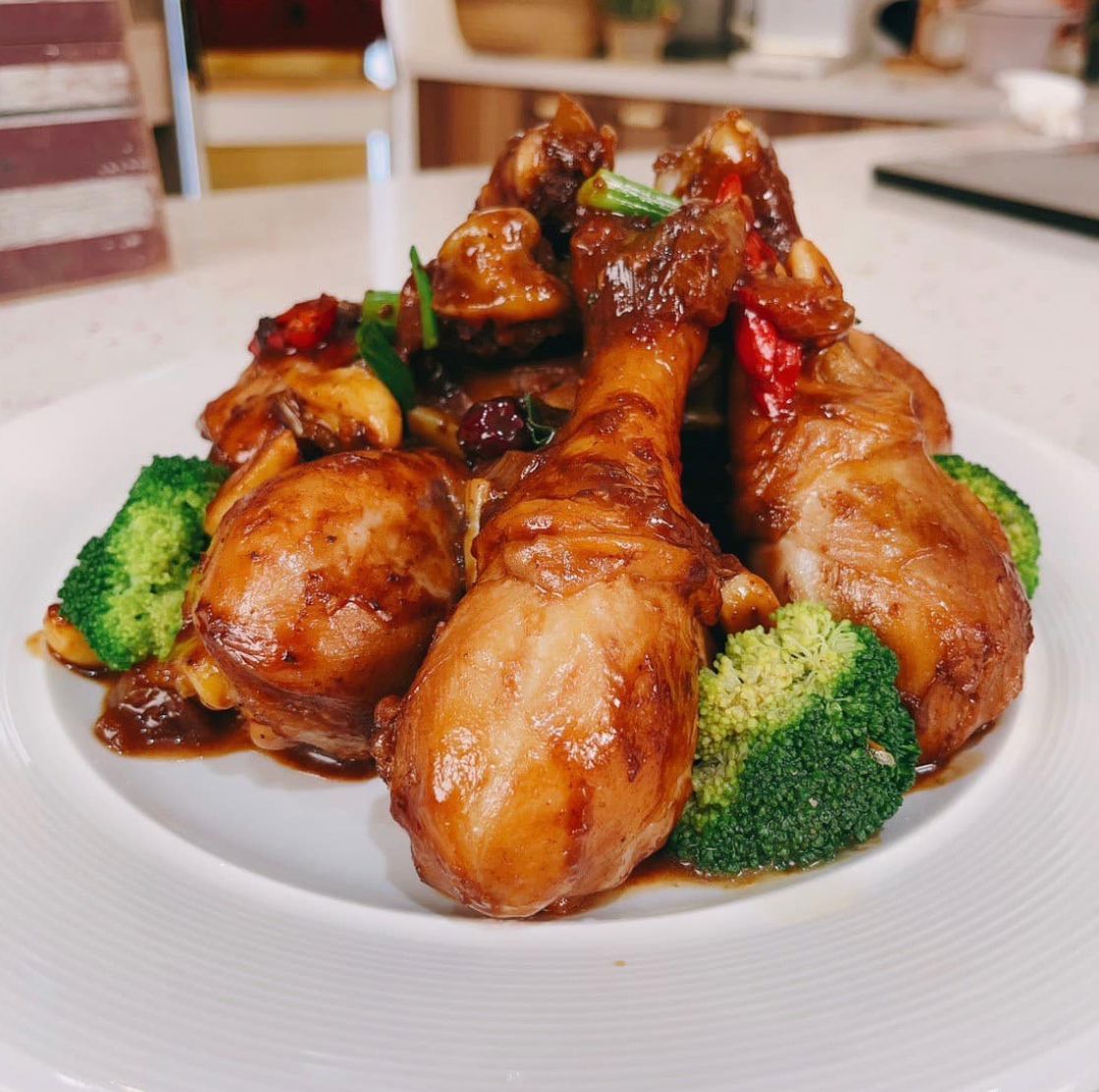 3、打開鍋蓋開大火煮到收汁,再下綠花椰菜煮熟,最後下辣椒片,即可起鍋排盤。